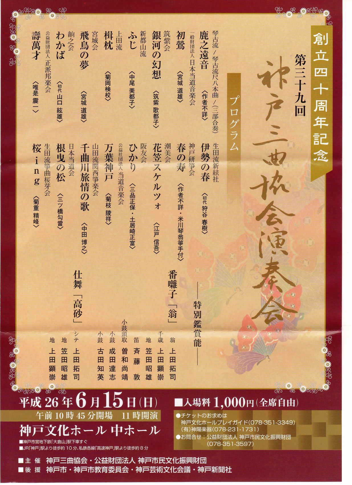創立40周年記念第39回神戸三曲協会演奏会