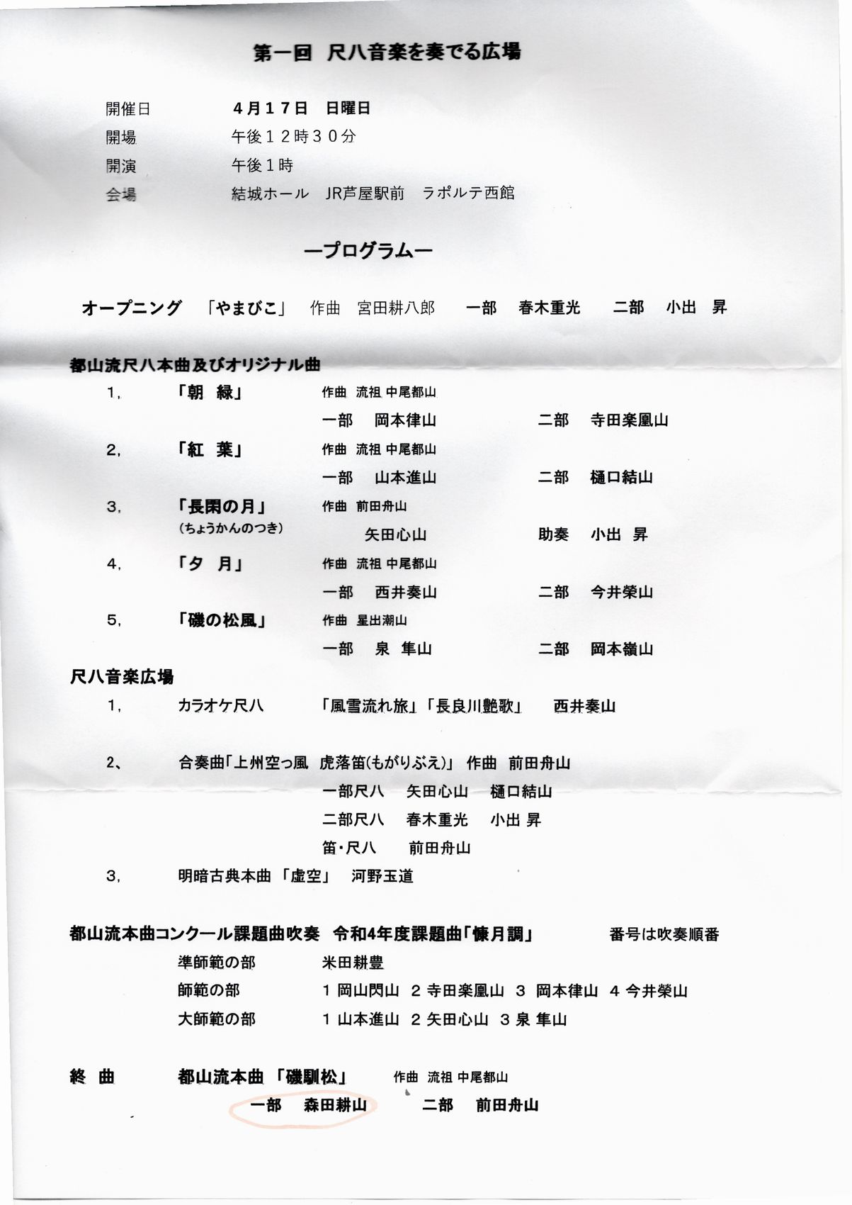 新都山流尺八 森田耕山